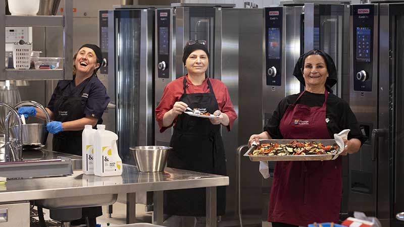 Vi har en stor skolgård där de inhägnade ytorna för fotboll och basket, många sittplatser utomhus finns och är uppskattade av eleverna. I skolans restaurang äter eleverna kostnadsfri frukost varje morgon.